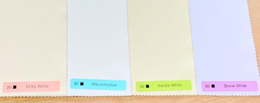 左から、スプリングに似合う「ミルキーホワイト」、サマーに似合う「マシュマロ」、オータムに似合う「バニラホワイト」、ウィンターに似合う「スノーホワイト」
