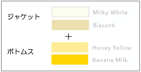 やはりアイボリーのような黄色味が入った明るいトーンの色には、同じ系統の黄色味が入った明るいトーンの色を合わせるのが正解です!