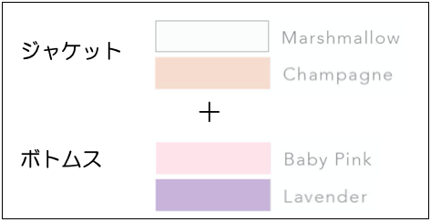 ボトムスには、青味が入った淡いピンクやラベンダーなどの優しい色をセレクトして、全体的に柔らかく優しい雰囲気を作ってあげるのがいいですね!