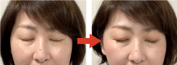 左側の画像は、淡いブラウンを1色目もとに入れただけで、アイラインもマスカラもしていません。