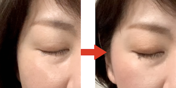 まずはアイシャドウ1色のみ入れた画像と、3色しっかり入れた画像で比較します。