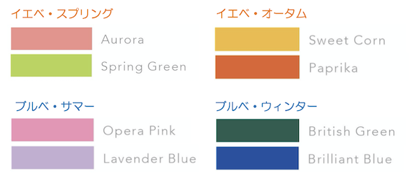 イエベ・オータムの方は、マスタード系やオレンジ系、テラコッタなどの暖色系がおすすめです。