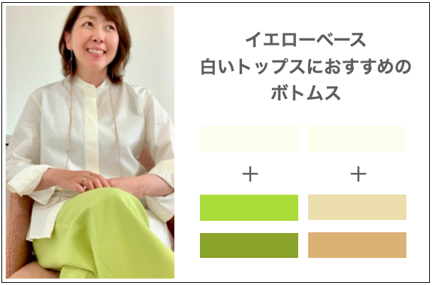 最近私が購入したのが、綺麗な黄緑色のストレートパンツです。 普段パーソナルカラー診断&骨格診断をするとき、トップスは白を着たいので、ボトムスに色を入れて華やか... -