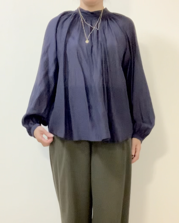 シアー素材のブラウスは、骨格ウェーブの方は大得意なのですが、骨格ストレートやナチュラルは膨張して見える苦手アイテムです。