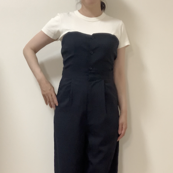 骨格ナチュラルの私は、今回のビスチェのようにタイトで短いアイテムが苦手です。