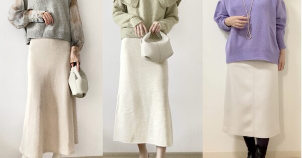 今回骨格ナチュラルの私は、厚手で長方形シルエットのミモレ丈スカートを選びました。