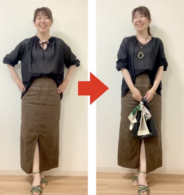 ここまでボトムスのカラーや足元、アクセサリーについて取り入れ方をお伝えしてきました。