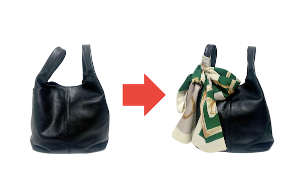 実はこのバッグは、下記の画像のように黒のバッグにイエベカラーのスカーフを巻いているだけです。
