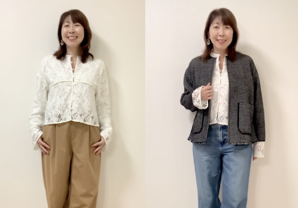 でもレース素材は、骨格タイプによって選び方に注意が必要なのと、色の組み合わせ方によってはセレモニー感が出て垢抜けない場合もあります。